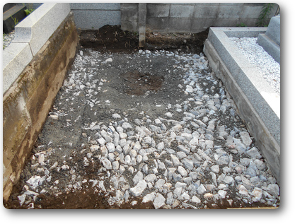 6.7尺x8.6尺の広さで現状のカロートと囲いのブロックを解体して