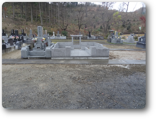 嵐山町の金泉寺墓苑様で墓所工事を行っています 13尺x9.8尺の広さに御影石で外柵を建てほかの場所に有った石碑を移動します 基礎工事が終わり建込工事を行っています