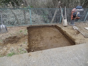 工事内容は、更地に基礎打ち、和洋型墓石建立、墓誌建立、外柵工事です。